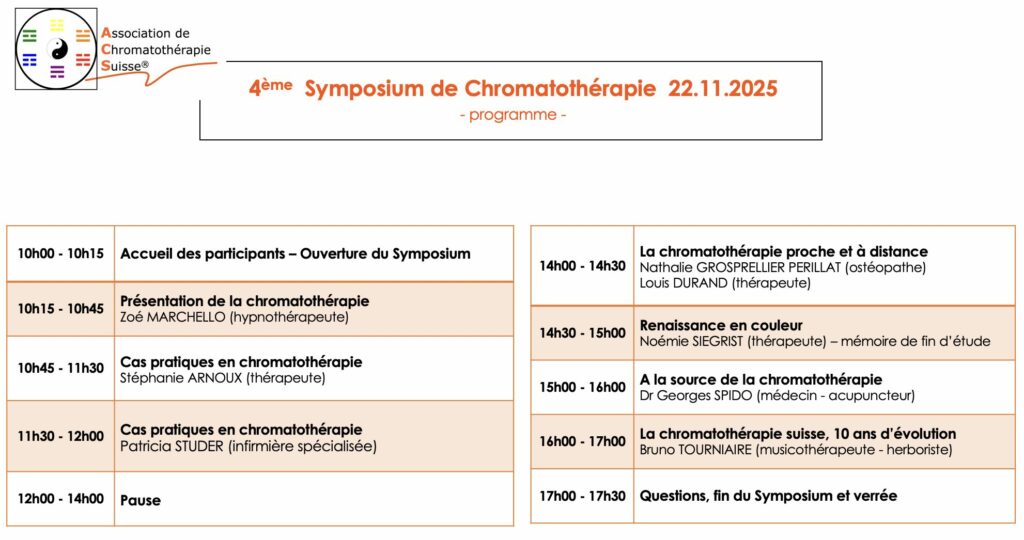 Présentation et programme du 4ème Symposium de Chromatothérapie – 10 ans de l’ACS